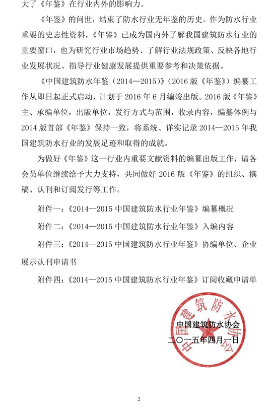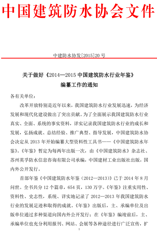 關(guān)于做好《2014—2015中國建筑防水行業(yè)年鑒》編纂工作的通知
